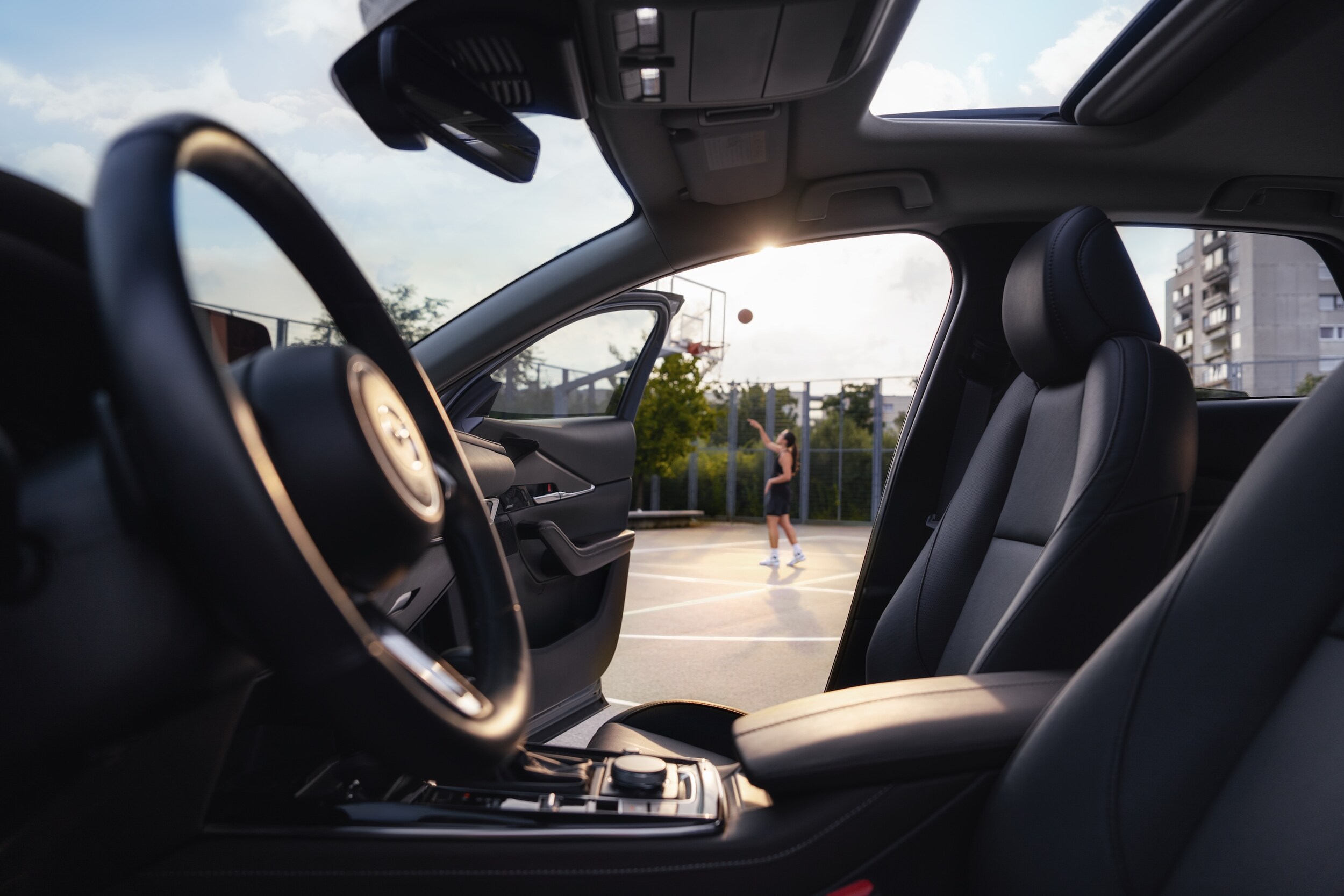 The Mazda CX-30 has a minimalist approach to its exterior design-however, for Mazda fans, that isn't anything new. You'll find an aerodynamic hood that hints at its performance capability. The LED daytime running lights and deep Black Mazda grille keep things straightforward-a truly buttoned-up, no-frills approach to design. Upgrading to a higher trim will unlock the Black accented grille, durable black roof rails, and 18-inch wheels.