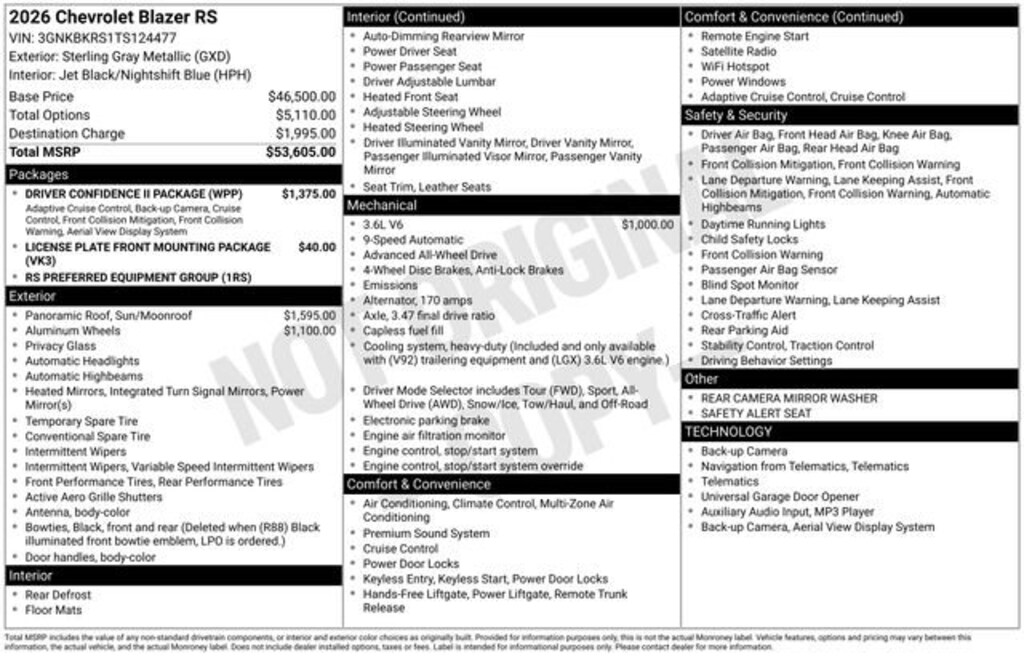 - Chevrolet Infotainment 3 Premium system with connected Navigation and 10.2" diagonal color touch-screen: