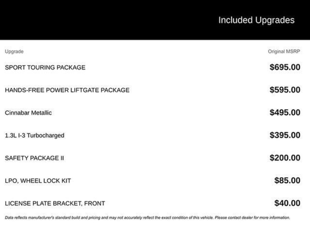 • Engine : ECOTEC 1.3L I-3 gasoline direct injection, DOHC, variable valve control, intercooled turbo, regular unleaded, engine with 155HP