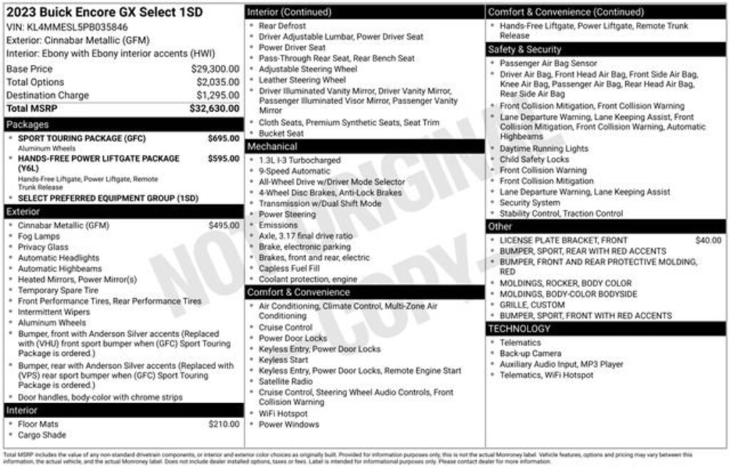 Cinnabar Metallic 2023 Buick Encore GX Select 4D Sport Utility AWD 9-Speed Automatic ECOTEC 1.3L Turbo 26/29 City/Highway MPG