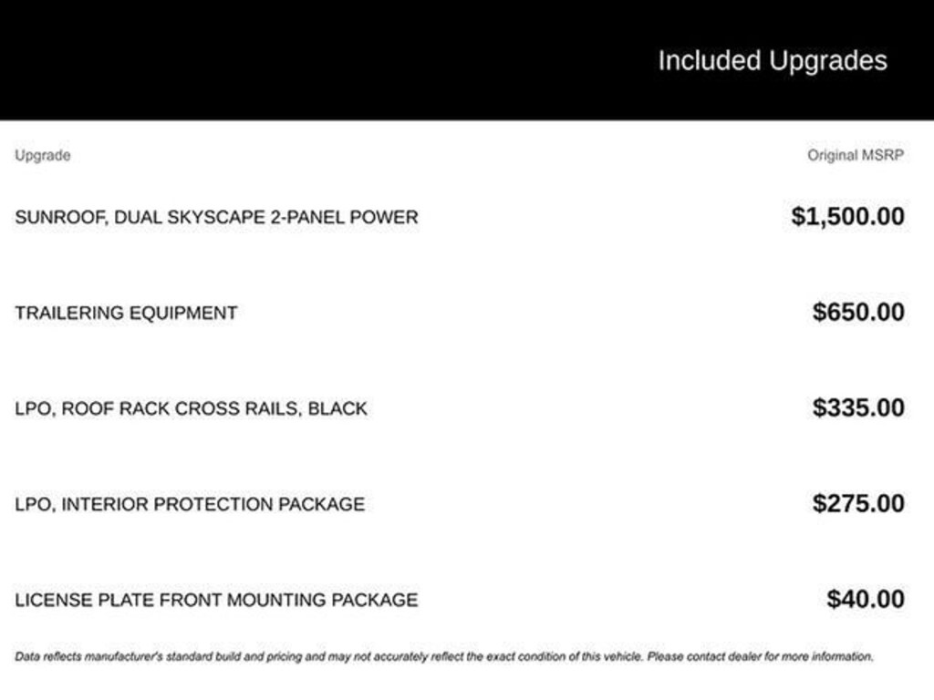 • Tires : P255/55HR20 AS BSW front and rear tires