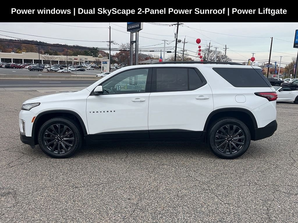 Schumacher Chevrolet of Clifton is excited to offer this handsome 2023 Chevrolet Traverse RS in Summit White Beautifully equipped with Preferred Equipment Group 2LT (Heated Driver & Front Passenger Seats), Front License Plate Bracket Mounting Package, Trailering Equipment (Hitch Guidance w/Hitch View, Heavy-Duty Cooling System, and Trailering Assist Guidelines), 3rd row seats: split-bench, 8-Way Power Driver Seat Adjuster, Air Conditioning, Alloy wheels, Apple CarPlay/Android Auto, Bose Premium 10-Speaker Audio System Feature, Dual SkyScape 2-Panel Power Sunroof, Heated door mirrors, Heated steering wheel, Navigation System, Power driver seat, Power Liftgate, Power windows, Radio: Chevrolet Infotainment 3 Plus System w/Navi, Remote keyless entry, SiriusXM w/360L, Speed control, Tilt steering wheel, Wheels: 20 Dark Aluminum, 10 Speakers, 3.49 Axle Ratio, 4-Wheel Disc Brakes, 6-Way Power Front Passenger Seat, ABS brakes, AM/FM radio: SiriusXM with 360L, Auto High-beam Headlights, Auto-dimming Rear-View mirror, Automatic temperature control, Brake assist, Bumpers: body-color, Compass, Delay-off headlights, Driver door bin, Driver vanity mirror, Dual front impact airbags, Dual front side impact airbags, Electronic Stability Control, Emergency communication system, Exterior Parking Camera Rear, Four wheel independent suspension, Front anti-roll bar, Front Bucket Seats, Front Center Armrest, Front dual zone A/C, Front Passenger 2-Way Power Lumbar, Front reading lights, Fully automatic headlights, Garage door transmitter, Heated front seats, Illuminated entry, Leather steering wheel, Low tire pressure warning, Not Equipped w/Rear Park Assist (060), Occupant sensing airbag, Outside temperature display, Overhead airbag, Overhead console, Panic alarm, Passenger door bin, Passenger vanity mirror, Perforated Leather-Appointed Seat Trim, Power door mirrors, Power Driver Lumbar Control, Power passenger seat, Power steering, Premium audio system: Chevrolet Infotainment 3 Plus, Radio data system, Rear air conditioning, Rear anti-roll bar, Rear reading lights, Rear window defroster, Rear window wiper, Security system, Speed-sensing steering, Spoiler, Steering wheel mounted audio controls, Tachometer, Telescoping steering wheel, Traction control, Trip computer, Turn signal indicator mirrors, Variably intermittent wipers, and Voltmeter!
