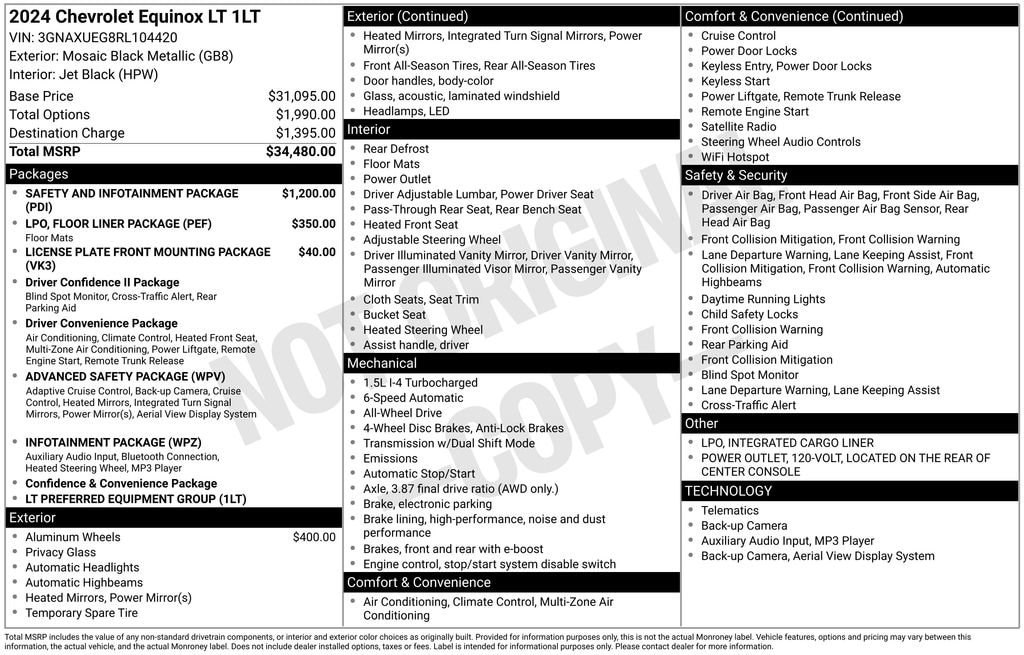Odometer is 18530 miles below market average!AWD.Mosaic Black Metallic 2024 Chevrolet Equinox LT 4D Sport Utility AWD 6-Speed Automatic Electronic with Overdrive 1.5L DOHC 24/30 City/Highway MPGFinal price includes all Factory Incentives.