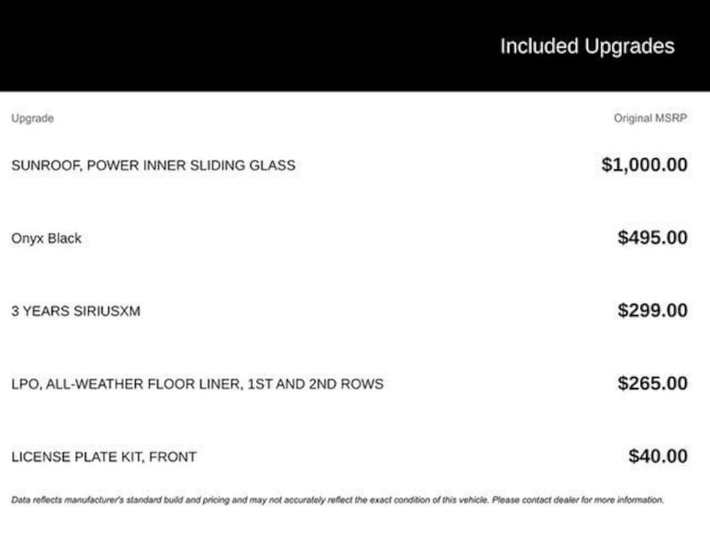 Price(s) include all costs to be paid by consumer, except for licensing costs, registration fees and taxes. Dealer is not responsible for typographical or pricing errors. Additional $399 doc fee due at time of sale. Although every reasonable effort has been made to ensure the accuracy of the information contained on this site, absolute accuracy cannot be guaranteed. This site, and all information and materials appearing on it, are presented to the user "as is" without warranty of any kind, either express or implied, including but not limited to the implied warranties of merchantability, fitness for a particular purpose, title or non-infringement. All vehicles are subject to prior sale. MPG estimates on this website are EPA estimates; your actual mileage may vary. For used vehicles, MPG estimates are EPA estimates for the vehicle when it was new. The EPA periodically modifies its MPG calculation methodology; all MPG estimates are based on the methodology in effect when the vehicles were new (please see the "Fuel Economy" portion of the EPA's website for details, including a MPG recalculation tool). Not available with special finance, lease and some other offers. Prices do not include additional fees and costs of closing, including government fees and taxes, any finance charges, any dealer documentation fees, any emissions testing fees or other fees. All prices, specifications and availability subject to change without notice.